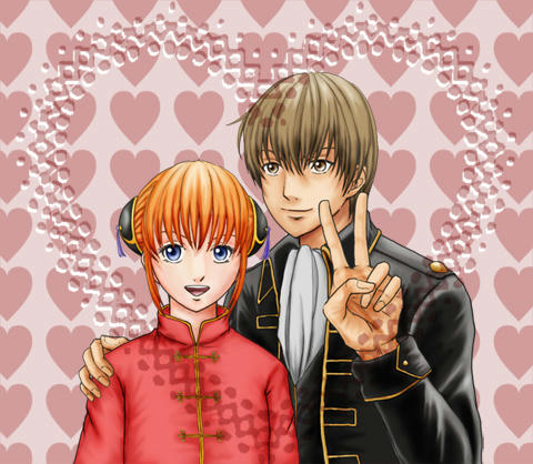 今年もよろしく!ってつもりで描いた絵だったのですが、ボク達結婚します!みたいな絵になってしまったので、ちょうどバレンタイン向きかも〜。無駄にハートでバック処理。(笑)